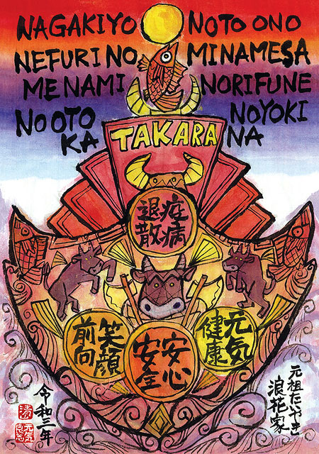 (横浜・白楽)にて、清山作「宝船の絵《が配られています。