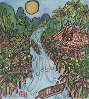 私の好きな言葉や沖縄の言葉と画をあわせた作品です。