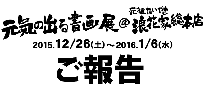 2015.12.26〜2016.1.6の間、元気の出る書画展@元祖たいやき麻布十番浪花家総本店を盛会のうちにお開きを迎えさせていただきました。